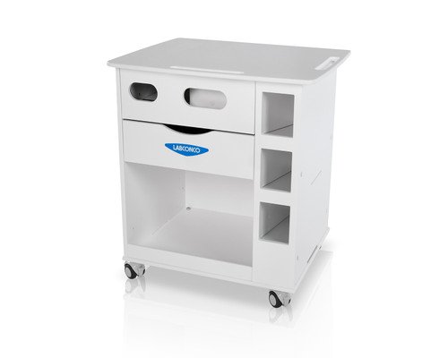Logic Cell Culture Cart is specifically designed to provide convenient storage of supplies commonly used in biological safety cabinets. Its compact size allows it to fit easily under Logic Class II Biosafety Cabinets and PuriCare Procedure Stations mounted on Telescoping Base Stands adjusted to any height. Two-inch diameter casters and front and right side handle cutouts allow the cart to be easily moved to within reach while the user works. Three right side compartments accommodate pipettes and other supplies. The top left side compartment with front panel cutouts accommodates boxes of wipes and gloves. The drawer holds a variety of miscellaneous small instruments and supplies. An open storage area holds larger equipment and supplies. The 25″ W x 19″ D work surface and cart bottom are constructed of corrosion-resistant white high density polyethylene that is easy to clean. Remaining components are constructed of corrosion-resistant white ABS.