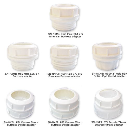 ScopeNEXT NX Series drum pumps can be ordered with a complete set of adapters (to ensure you get the right fit) or you can order each adapter separately if you know your drum type. Certain adapters are more common in the United States, Britain, and Europe, and each is available to ensure our NX-Series pumps fit your drum.