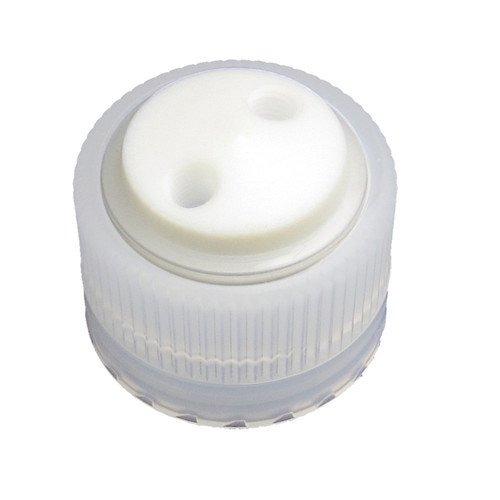 Port Cap for Nalgene 38-430 bottle, with (2) 1/4-28 female ports, PTFE insert with polypropylene spin collar