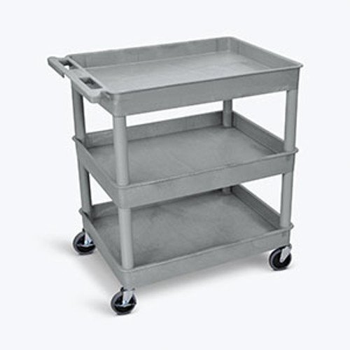 Luxor Part # TC111-B. Luxor 3 Shelf Tub Cart. Choose either three tub shelves or flat top shelf and middle, bottom tub shelves utility cart with 4″ casters, two with locking brake. STC111 – 24″W x 18″D x 38.5″H. 2-3/4″ deep tubs. STC211 – 24″W x 18″D x 36.5″H. Tub Cart, Three Shelves (2.75″ Deep each.) Black, 32″W x 24″D x 37.25″H, with (4) 4″ Heavy Duty Casters (2 with Locking Brakes.) Maximum Weight Capacity 400lbs, Assembly Required. Category: Equipment & Furniture>Carts>Utility